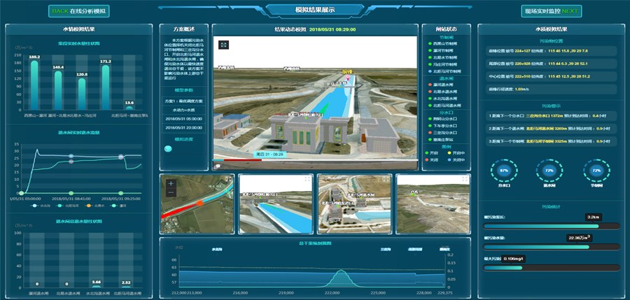 水質(zhì)突發(fā)事件應(yīng)急處置決策支持系統(tǒng)(基于BIM模型結(jié)合GIS、實(shí)景模型、智能語(yǔ)音技術(shù)等實(shí)現(xiàn)水質(zhì)污染模型的在線構(gòu)建與計(jì)算,并可實(shí)現(xiàn)污染物行進(jìn)位置的實(shí)時(shí)播報(bào))
