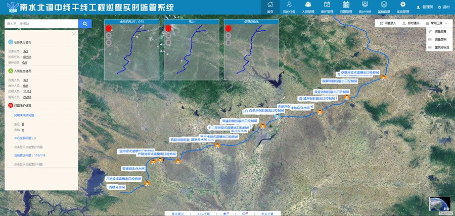 南水北調(diào)中線干線工程巡查維護(hù)管理系統(tǒng)(覆蓋中線全線機(jī)電設(shè)備巡查管理,實(shí)現(xiàn)巡查問(wèn)題的實(shí)時(shí)發(fā)現(xiàn)與處理)
