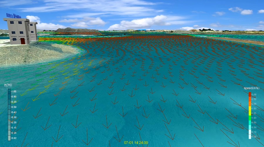 基于BIM模型,結(jié)合GIS技術(shù),與水力學(xué)模型深度融合,實(shí)現(xiàn)洪水風(fēng)險(xiǎn)分析的三維可視化。