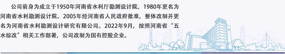 公司前身可追溯至1950年成立的河南省治淮總指揮部計劃處,1956年與河南省水利廳勘測設(shè)計處合并成立了河南省水利廳勘測設(shè)計院,1980年更名為河南省水利勘測設(shè)計院。2005年經(jīng)省人民政府批準,整體改制為科技型企業(yè),并更名河南省水利勘測設(shè)計研究有限公司。2022年9月,根據(jù)河南省委、省人民政府“五水綜改”相關(guān)工作部署,公司積極推進股權(quán)重組,由河南水利投資集團有限公司控股51%,公司改制為國有控股企業(yè)。