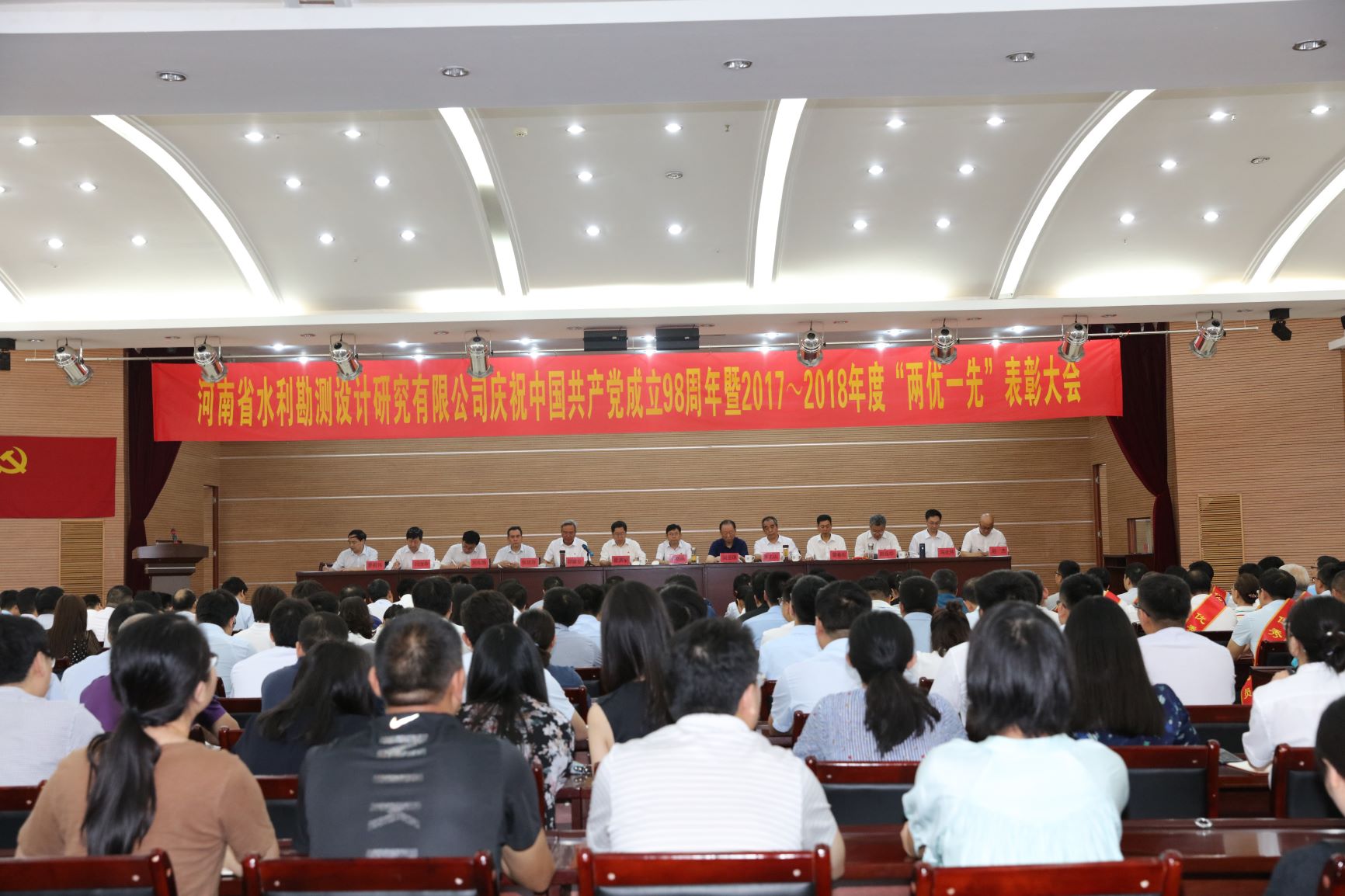 6月28日上午,河南省水利勘測設計研究有限公司慶祝中國共產(chǎn)黨成立98周年暨“兩優(yōu)一先”表彰大會隆重舉行。公司200余名黨員齊聚一堂,大家整齊著裝、胸佩黨員徽章,共同慶祝中國共產(chǎn)黨98歲華誕。水利廳副廳級領導、總工程師李斌成、廳直機關黨委副書記劉亞琪出席大會。