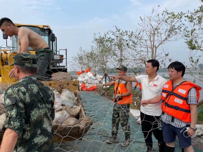 7月19日汛情發(fā)生后,根據省水利廳防汛工作統(tǒng)一安排和部署,公司第一時間成立由公司黨委書記、董事長翟淵軍牽頭指揮的豫水設計防汛應急工作領導小組,啟動了由前線搶險專家團隊、后方技術支撐團隊和后勤保障團隊組成的防汛搶險應急響應機制,24小時日夜值守,滾動會商。截止目前,公司黨委委員、總經理朱太山帶隊,先后派出26支抗洪搶險專家組共計58人(次),其中共產黨員42人(次),奔赴鄭州、滎陽、新密、登封、新鄉(xiāng)、輝縣、衛(wèi)輝、安陽、鶴壁、濮陽、平頂山、許昌等地參與水利工程應急搶險,為常莊等10余座水庫,衛(wèi)河、共產主義渠等河道堤防,以及南水北調中線總干渠工程安全提供了科學的技術支持,在保障人民群眾生命財產安全方面發(fā)揮了至關重要的作用。