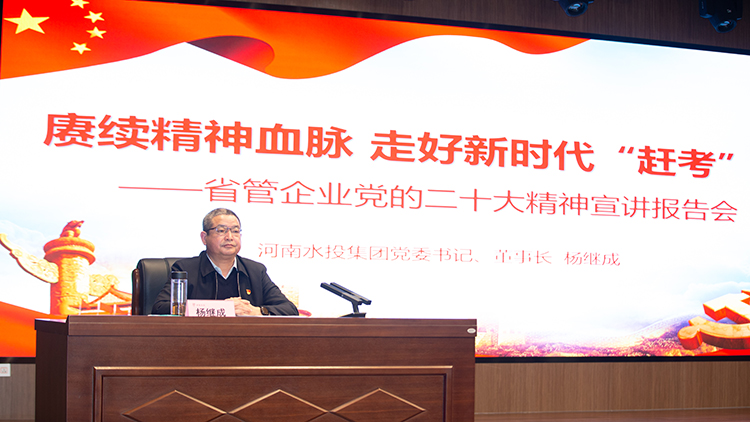 2022年12月12日下午,公司黨委書記、董事長(zhǎng)翟淵軍帶領(lǐng)公司班子成員現(xiàn)場(chǎng)參加了水投集團(tuán)舉辦的二十大精神報(bào)告會(huì),各支部也組織支部黨員在線參加了學(xué)習(xí)。會(huì)上,水投集團(tuán)黨委書記、董事長(zhǎng)楊繼成作了《賡續(xù)精神血脈 走好新時(shí)代“趕考”路》的報(bào)告。報(bào)告從大會(huì)主題及主要成果、過(guò)去5年工作和新時(shí)代十年偉大變革、馬克思主義中國(guó)化時(shí)代化、中國(guó)式現(xiàn)代化、全面建設(shè)社會(huì)主義現(xiàn)代化國(guó)家的目標(biāo)任務(wù)、堅(jiān)持黨的全面領(lǐng)導(dǎo)和全面從嚴(yán)治黨、應(yīng)對(duì)風(fēng)險(xiǎn)挑戰(zhàn)、傳承弘揚(yáng)紅旗渠精神等8個(gè)方面對(duì)黨的二十大精神進(jìn)行了全面解讀和輔導(dǎo)。報(bào)告緊扣主題、內(nèi)涵豐富、邏輯嚴(yán)謹(jǐn),對(duì)廣大黨員準(zhǔn)確把握二十大精神有很強(qiáng)的啟迪作用,對(duì)進(jìn)一步落實(shí)落細(xì)二十大精神有很強(qiáng)的指導(dǎo)意義。
