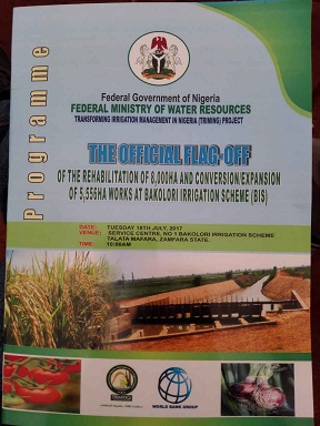 2017年7月18日,由尼日利亞聯(lián)邦政府向世界銀行貸款的Bakolori灌區(qū)項(xiàng)目開(kāi)工典禮在工程現(xiàn)場(chǎng)隆重舉行。該項(xiàng)目受到了尼日利亞政府的高度重視,多位政要和當(dāng)?shù)赝镣跚蹰L(zhǎng)受邀參加典禮儀式。按照典禮議程,尼日利亞目前最高掌權(quán)人代總統(tǒng)Prof. Yemi Osibanjo出席開(kāi)工典禮,講話并親自為工程開(kāi)工剪彩,由于突發(fā)的暴雨天氣,代總統(tǒng)未能按照既定的時(shí)間到達(dá)現(xiàn)場(chǎng)。最后,由尼日利亞聯(lián)邦水資源部部長(zhǎng)Engr. Suleiman Hussein Adamu主持典禮,并對(duì)該項(xiàng)目進(jìn)行了開(kāi)工儀式剪彩,世行官員、當(dāng)?shù)卣?、?dāng)?shù)厍蹰L(zhǎng)、農(nóng)民代表、咨詢方、承包商等參加了項(xiàng)目開(kāi)工典禮。