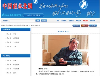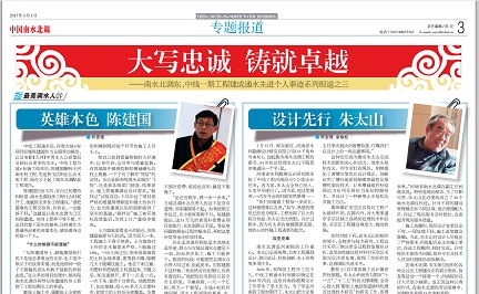 3月1日,《中國(guó)南水北調(diào)》報(bào)及其網(wǎng)頁版(epaper.nsbd.cn)均刊發(fā)了采訪我公司總經(jīng)理朱總的專題報(bào)道《設(shè)計(jì)先行朱太山》。