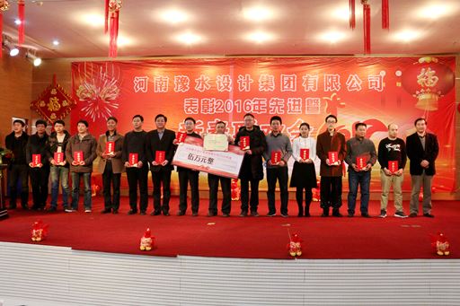 接著,集團公司副總經理何杰宣讀了關于表彰2016年崗位標兵、優(yōu)秀管理者、優(yōu)秀團隊以及“總經理特別貢獻獎”的決定。工程設計一院被評為優(yōu)秀團隊,苗紅昌、薛應科被評為優(yōu)秀管理者,朱智偉、劉洪飛、盧瑕、曲曉寧、嚴勇被評為年度崗位標兵,耿昕、李雪艷、李小舟等40名同志被評為季度崗位標兵,2016年南水北調搶險設計小組和數字工程中心創(chuàng)新團隊榮膺總經理特別貢獻獎。在大家的熱烈掌聲中,與會領導先后上臺為獲獎者頒發(fā)獲獎證書、獎金,并與獲獎者合影留念。