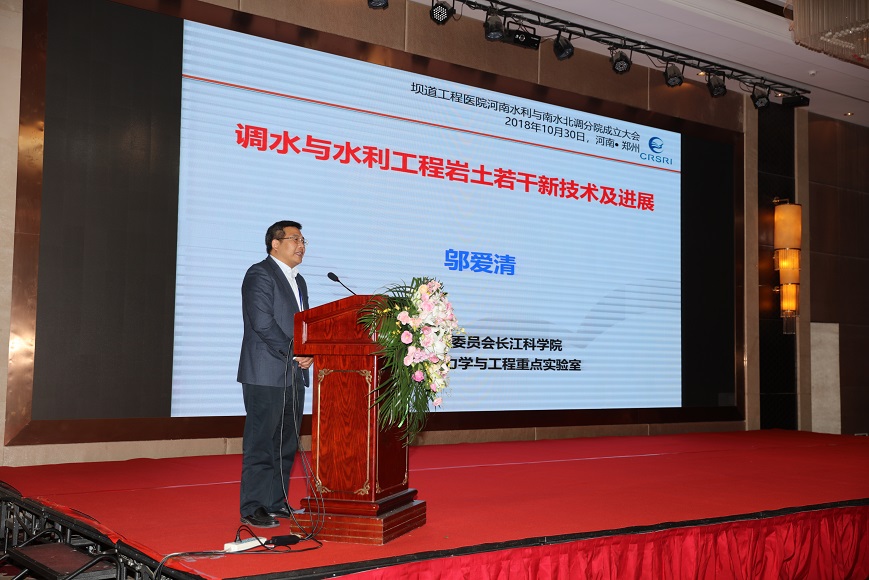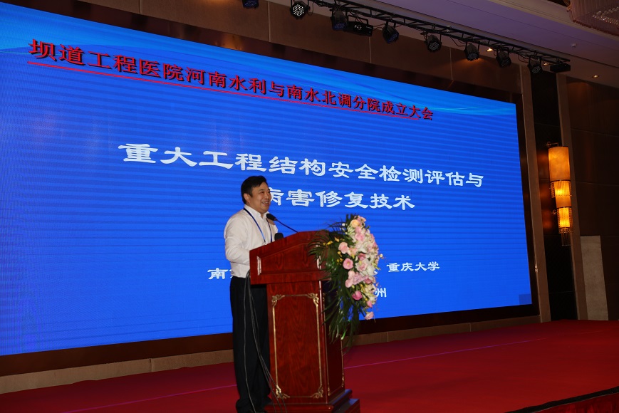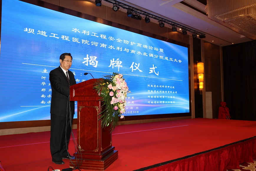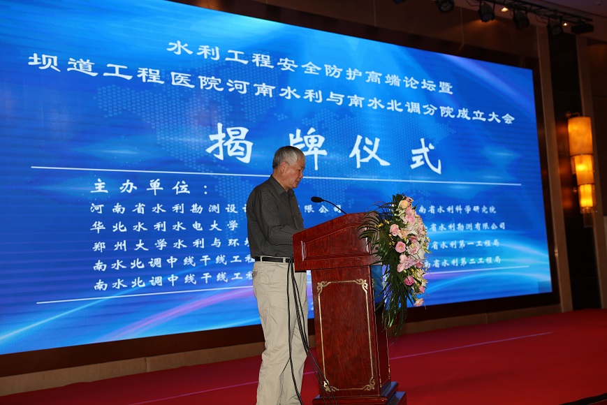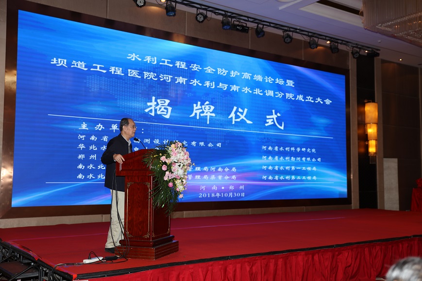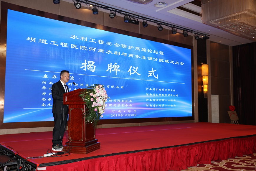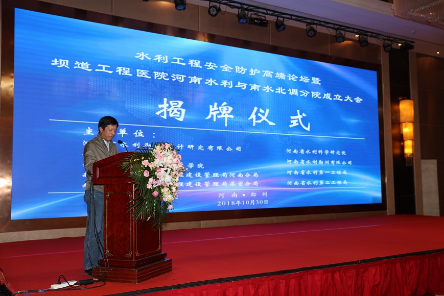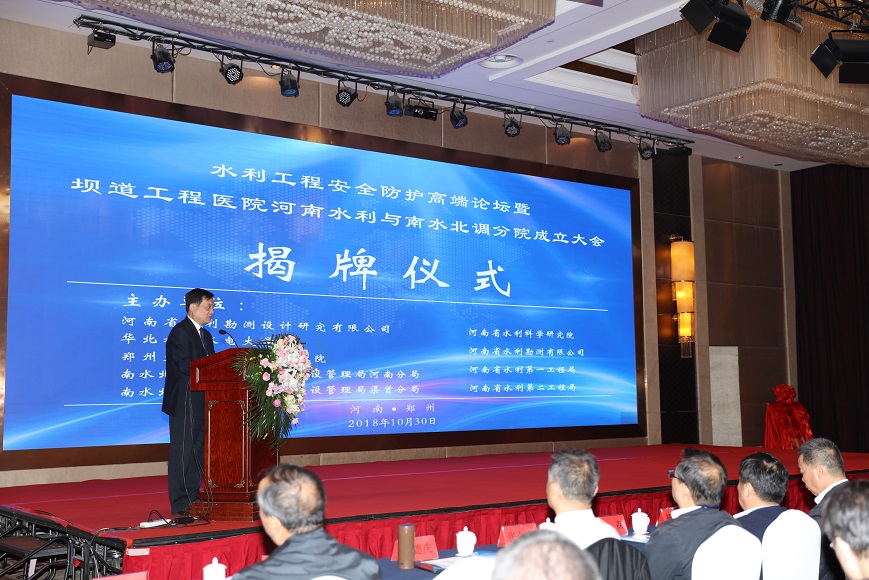 2018年10月30日上午,水利工程安全防護(hù)高端論壇暨壩道工程醫(yī)院河南水利與南水北調(diào)分院成立大會(huì)在鄭州天鵝城國際飯店隆重召開。中國工程院王家耀院士、王復(fù)明院士等來自40多家單位的領(lǐng)導(dǎo)、嘉賓200多人參會(huì)。會(huì)議開幕式由河南省水利勘測設(shè)計(jì)研究有限公司翟淵軍董事長主持,華北水利水電大學(xué)劉文鍇校長致歡迎辭,相關(guān)領(lǐng)導(dǎo)講話,王復(fù)明院士介紹了《壩道工程醫(yī)院建設(shè)進(jìn)展》,會(huì)議舉行了揭牌儀式和高端論壇。