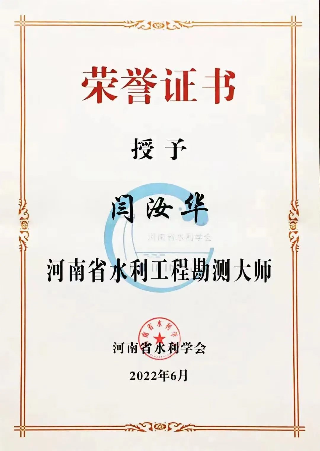 6月21日,河南省水利學(xué)會在鄭州舉行2022年學(xué)術(shù)年會,會上對評選出的十位河南省水利大師進(jìn)行表彰。我公司副總經(jīng)理趙廷華同志榮獲河南省水利工程設(shè)計(jì)大師榮譽(yù)稱號,監(jiān)事會主席、技術(shù)副總監(jiān)閆汝華同志榮獲河南省水利工程勘測大師榮譽(yù)稱號。