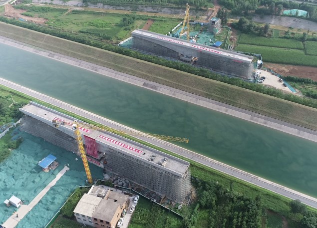 經(jīng)過項(xiàng)目技術(shù)團(tuán)隊(duì)一系列刻苦攻關(guān),最終確定了在南水北調(diào)中線總干渠上采用連續(xù)梁結(jié)構(gòu)轉(zhuǎn)體施工的技術(shù)方案,有力地保證了總干渠“運(yùn)行安全、工程安全、水質(zhì)安全”和施工安全,大大縮短了工期。