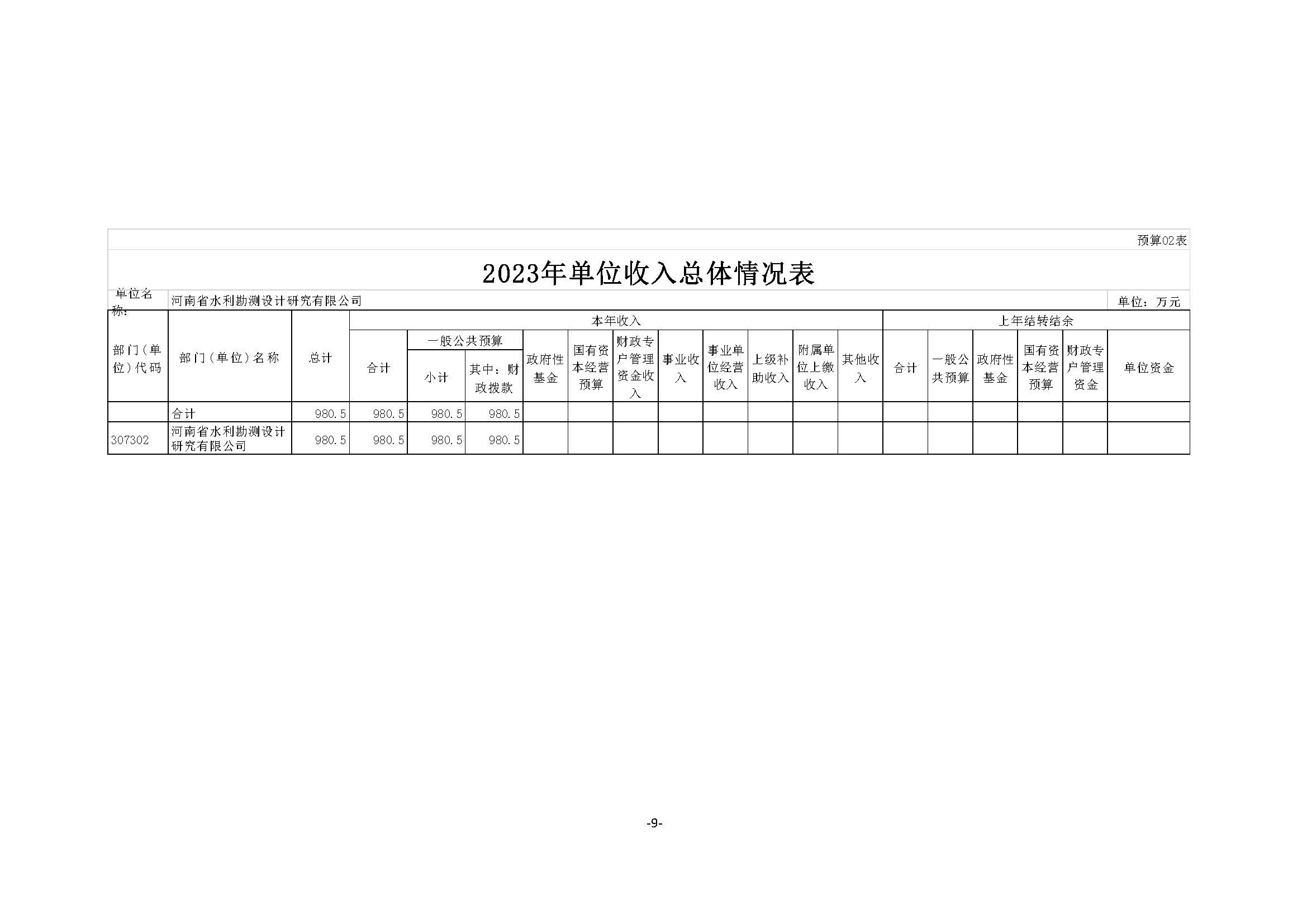 河南省水利勘測(cè)設(shè)計(jì)研究有限公司2023預(yù)算公開