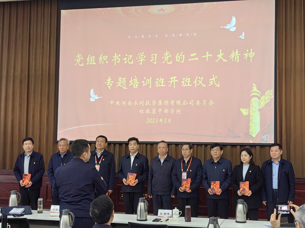 為深入學(xué)習(xí)貫徹黨的二十大精神,深刻把握黨的二十大報告核心要義、精神實質(zhì)和重大部署,進(jìn)一步加強基層黨組織建設(shè),提升基層黨組織書記做好新形勢下黨建工作和思想政治工作的能力水平,河南水投集團公司黨委于3月23日-3月27日在紅旗渠干部學(xué)院舉辦基層黨組織負(fù)責(zé)人學(xué)習(xí)黨的二十大精神專題培訓(xùn)班。公司黨委書記、董事長翟淵軍帶領(lǐng)趙廷華、馮光偉、袁榆梁等領(lǐng)導(dǎo)參加了培訓(xùn)。