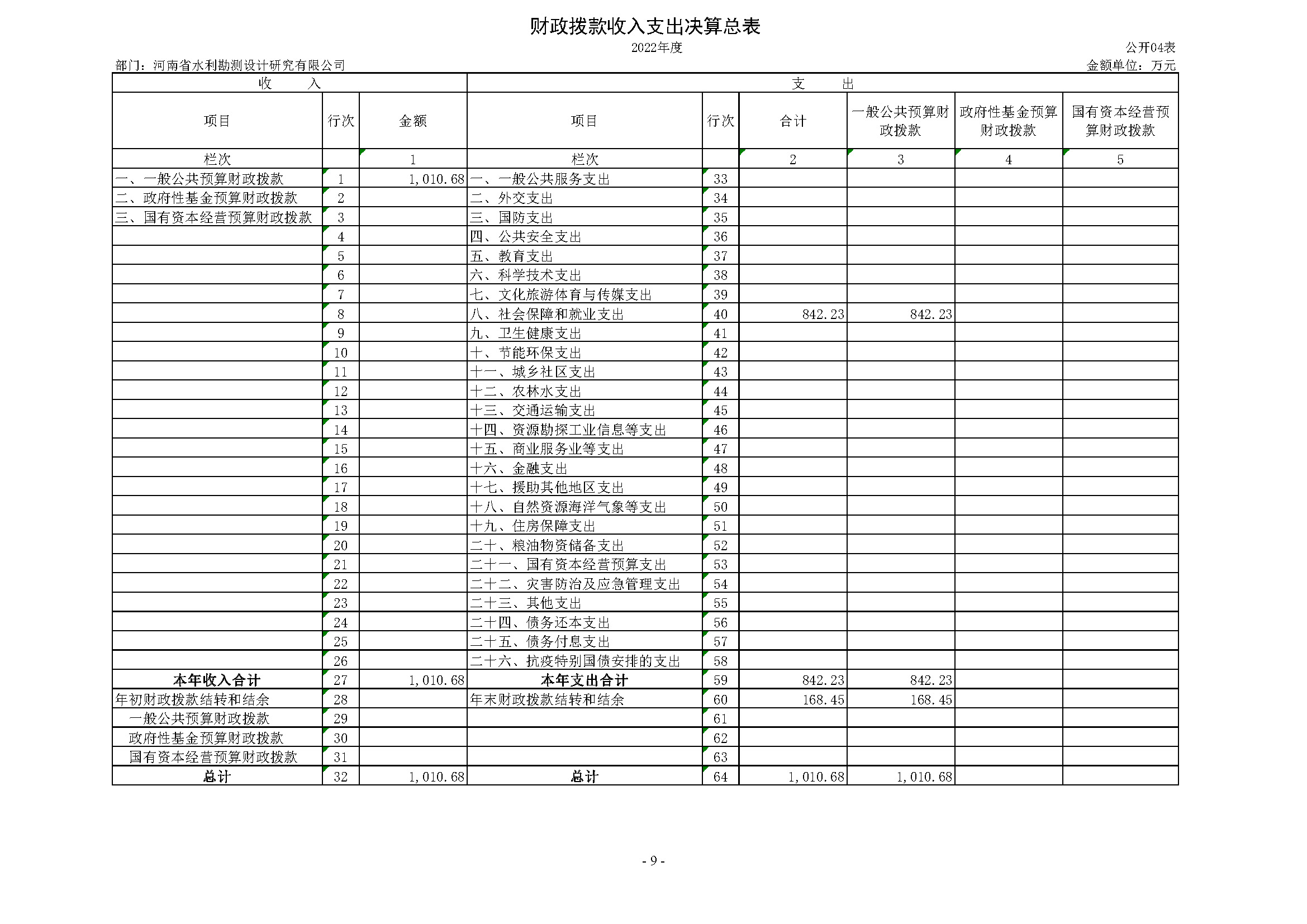 2022年度河南省水利勘測設(shè)計研究有限公司部門決算