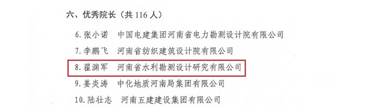 近日,河南省工程勘察設(shè)計(jì)行業(yè)協(xié)會公布“2023年度河南省工程勘察設(shè)計(jì)行業(yè)優(yōu)秀會員和個(gè)人名單”通知,公司獲得多項(xiàng)表彰。