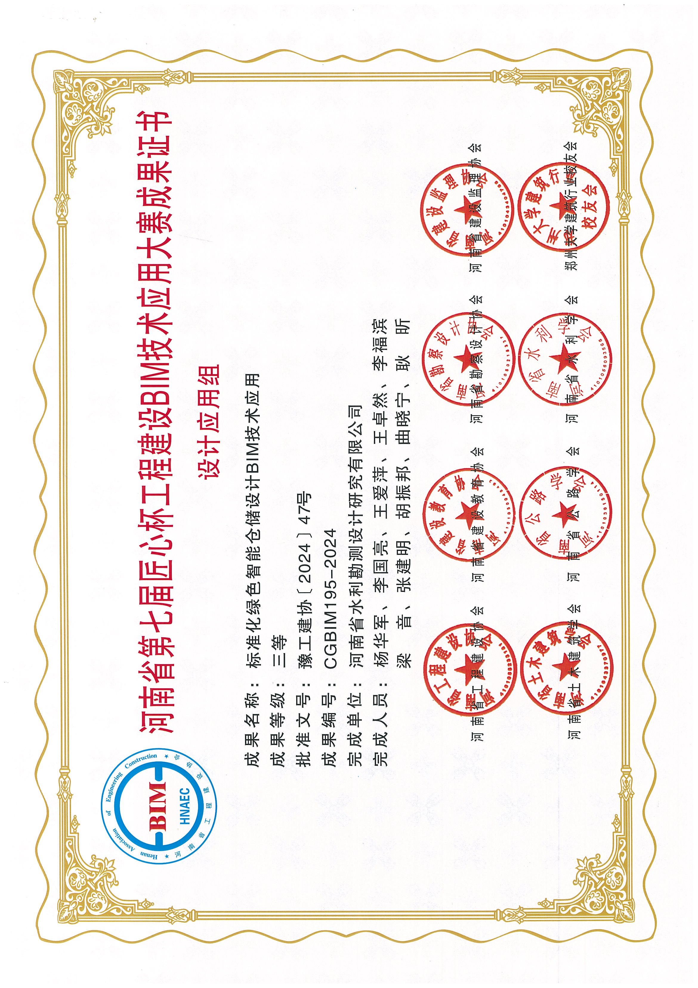 河南省第七屆“匠心杯”工程建設(shè)BIM技術(shù)大賽由河南省工程建設(shè)協(xié)會、河南省建設(shè)教育協(xié)會、河南省勘察設(shè)計協(xié)會、河南省建設(shè)監(jiān)理協(xié)會、河南省土木建筑學(xué)會、河南省公路學(xué)會、河南省水利學(xué)會、鄭州大學(xué)建筑行業(yè)校友會共同主辦,公司取得了非常優(yōu)異的成績,所有報送的5項成果均榮獲獎項,這不僅是對公司技術(shù)實力的肯定,也是團(tuán)隊努力與創(chuàng)新的結(jié)晶。