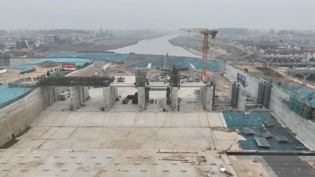 賈魯河綜合治理工程扶溝縣北關(guān)閘建設(shè)現(xiàn)場(盧漢 攝)