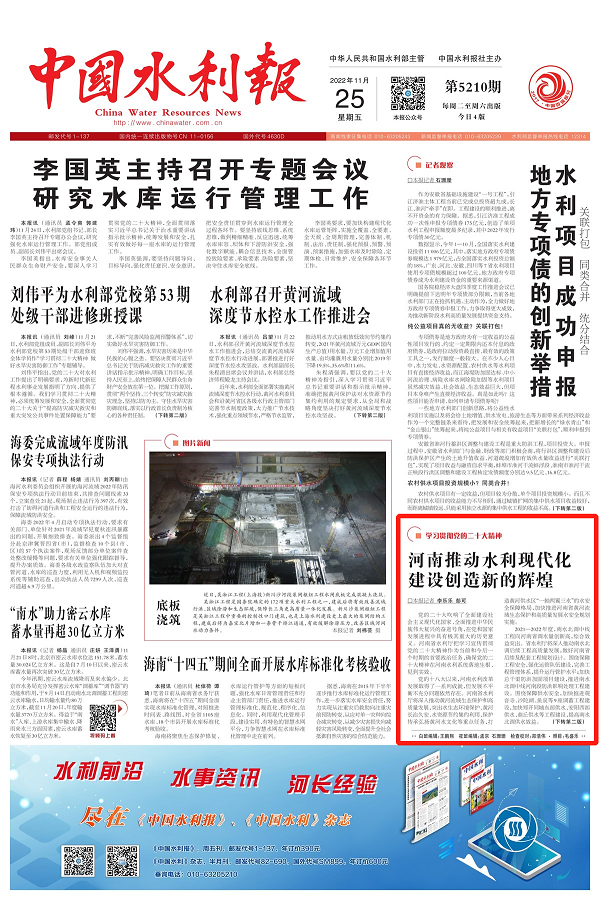 黨的二十大吹響了全面建設(shè)社會主義現(xiàn)代化國家、全面推進中華民族偉大復(fù)興的奮進號角,在黨和國家發(fā)展進程中具有極其重大的歷史意義。河南省水利廳把學習宣傳貫徹黨的二十大精神作為當前和今后一個時期的首要政治任務(wù),確保黨的二十大精神在河南水利系統(tǒng)落地生根、見到實效。